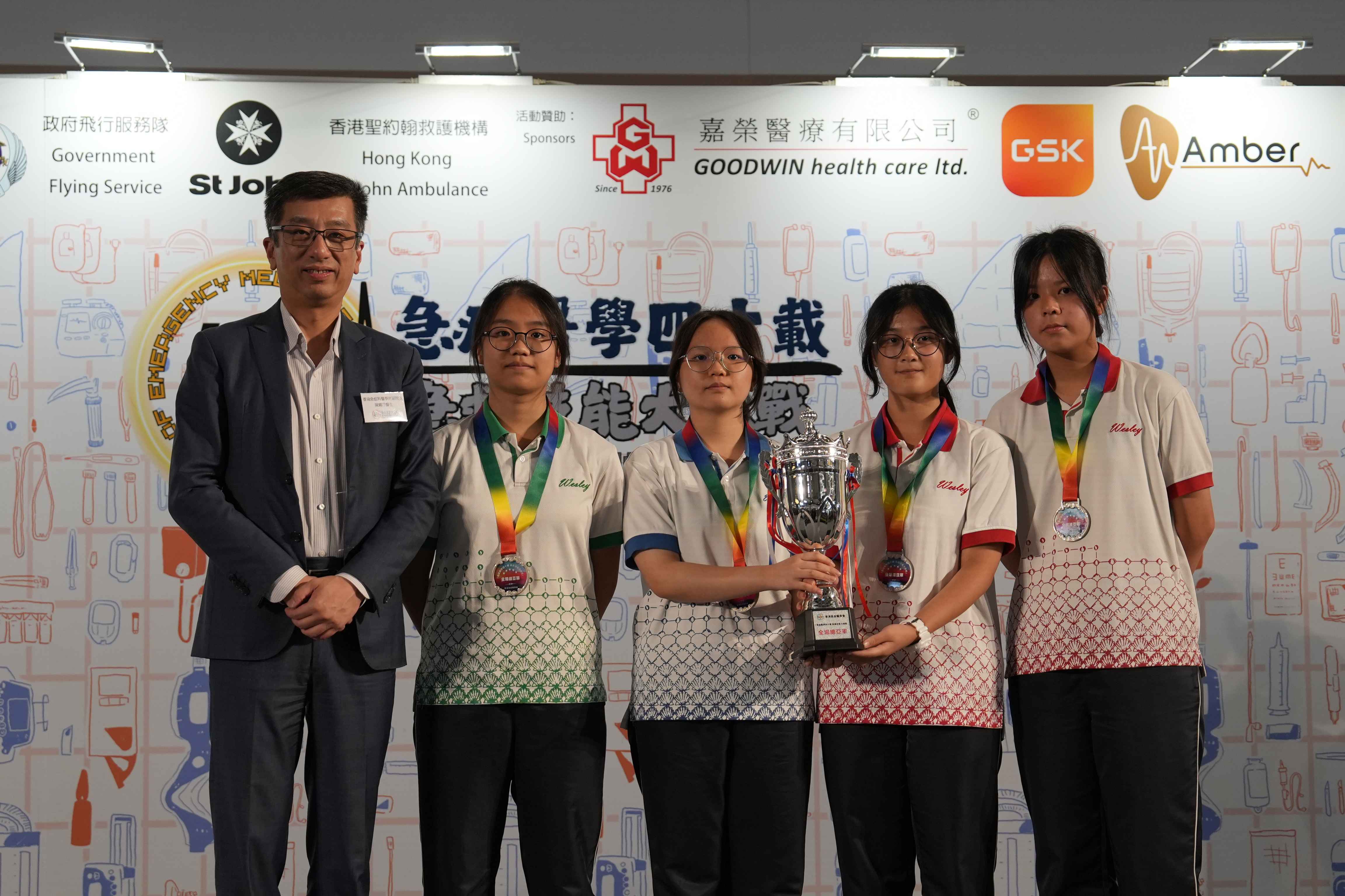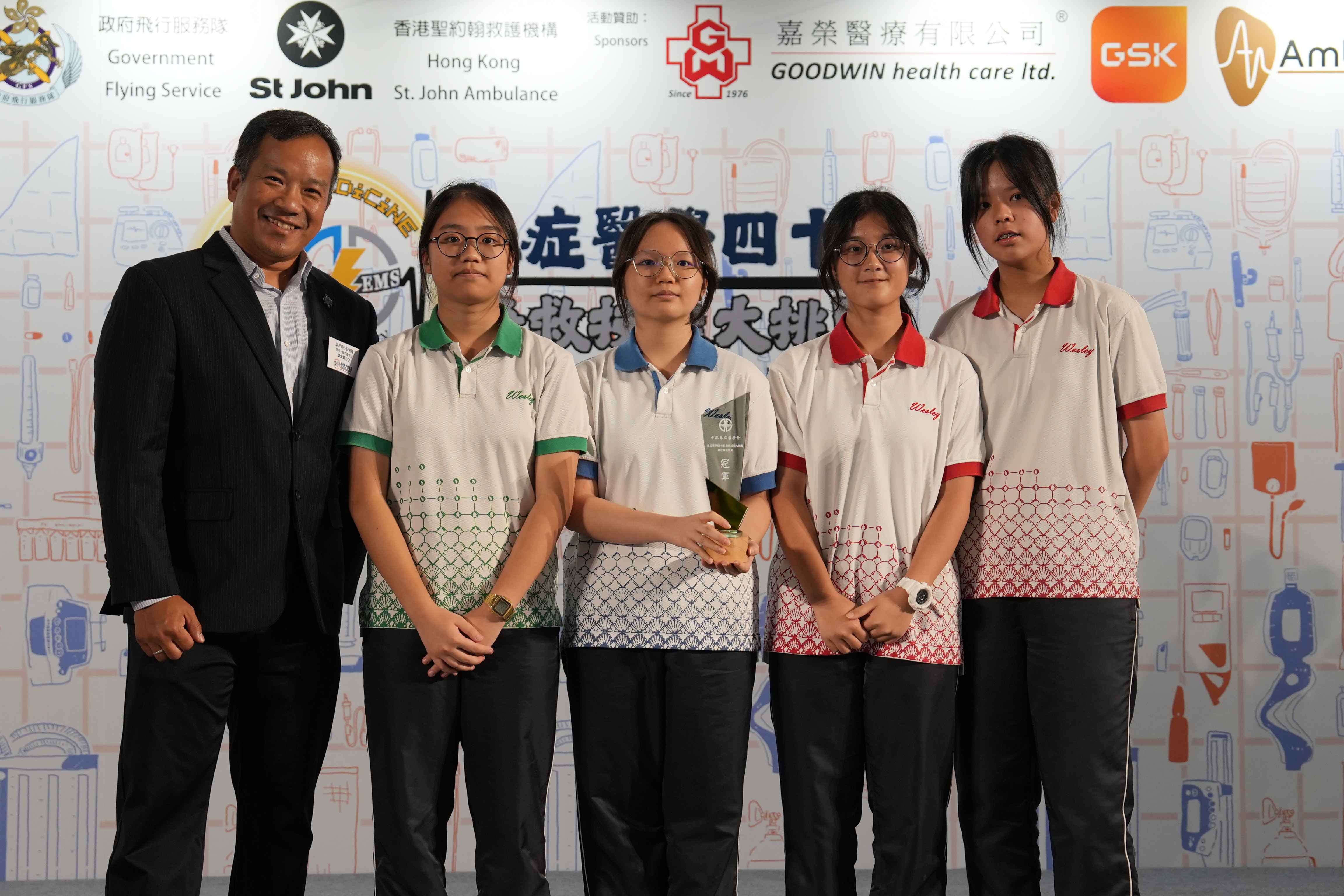 本校紅十字會會員5B王嘉雯、5D張莜、5D林穎俞、4D陳菀文於2025年9月21日參與由香港急症醫學會舉辦之「急症醫學四十載‧急救技能大挑戰」中學生急救比賽。同學於急救問答比賽中表現卓越,成績優異,獲得急救問答比賽冠軍,並在模擬場景比賽中表現出色,最後榮獲全場總亞軍。